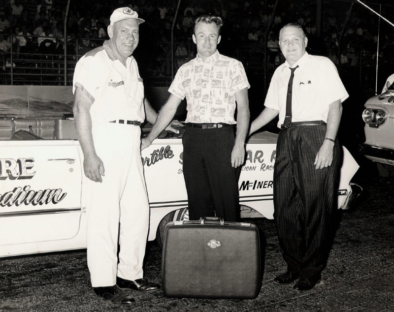 good-bye to local racing, Fred Lorenzen (center) poses with