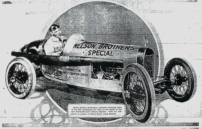 The May 16, 1924 issue of the Northside Citizen newspaper carried a photo of top Chicago automobile racer Esthan Wenneston and his Nelson Brothers Special.